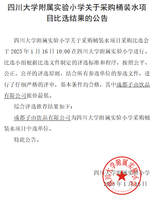 下一条:四川大学附属实验小学关于采购2025年清洁卫生用品项目比选结果的公告