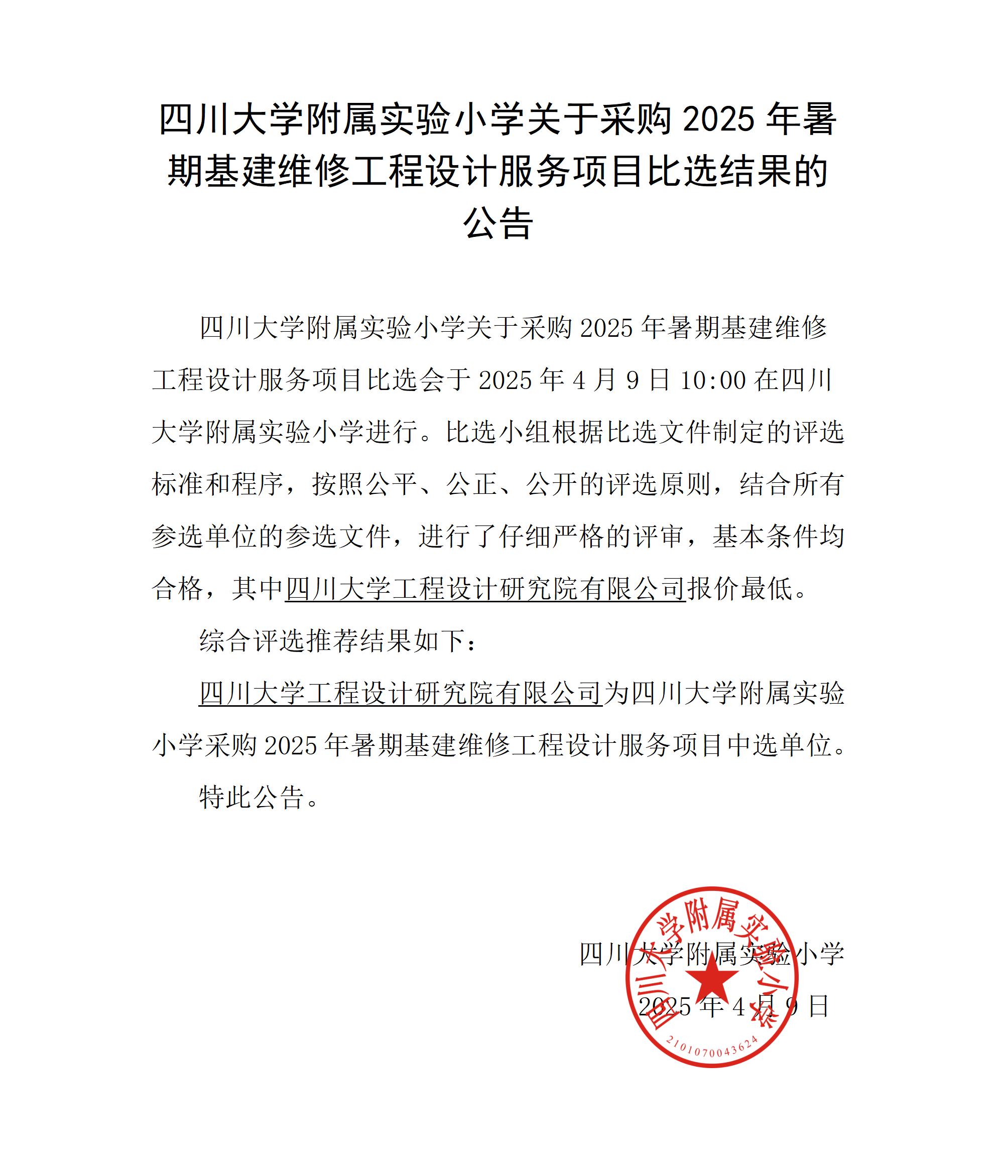 下一条:四川大学附属实验小学2025年暑期基建维修工程设计服务比选通知书