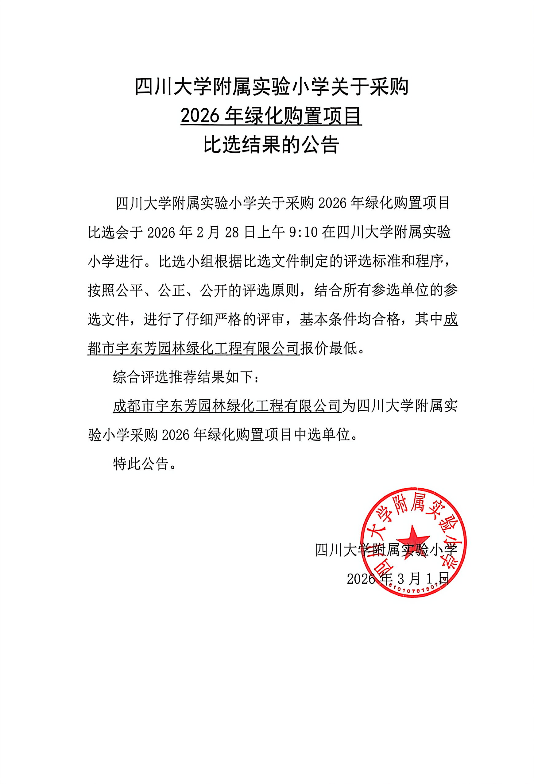 下一条:四川大学附属实验小学关于采购2026年教师办公桌、椅项目比选结果的公告