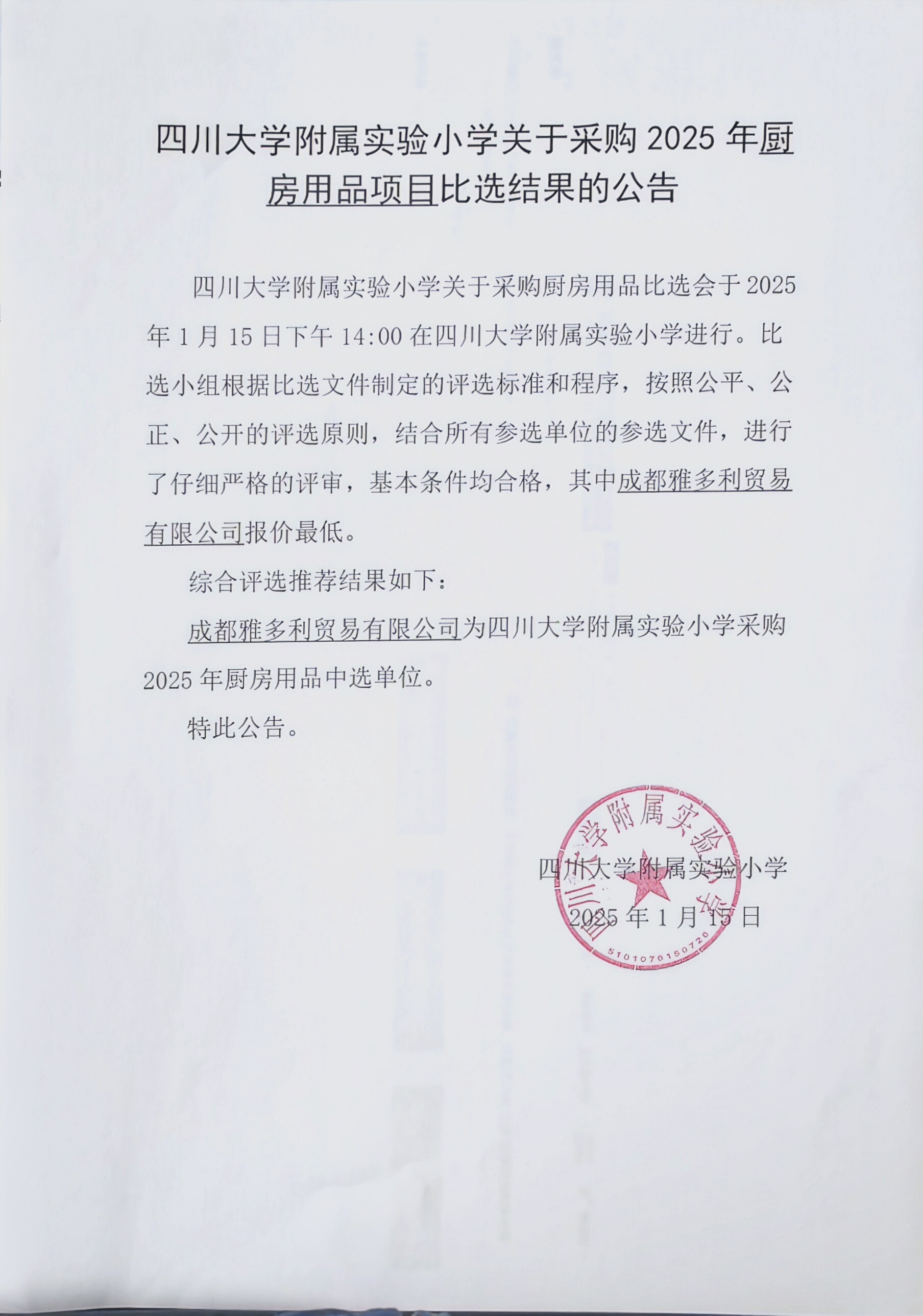 下一条:四川大学附属实验小学关于采购办公用品项目比选结果的公告